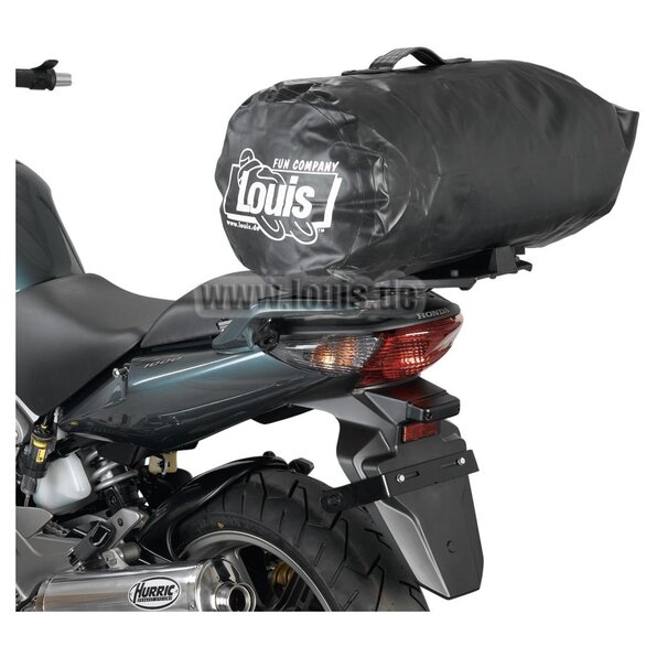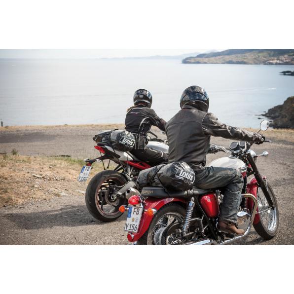 Whether you have a chopper, streetbike or Enduro, you can't go wrong with the extremely robust, variable-capacity Speedbag! The bag can be closed, waterproofed and kept tightly packed with the simple but ingenious roll-down closure. PVC-coated on both sides, the polyamide fabric with welded seams is absolutely waterproof and resistant to dust and dirt. The quality of this classic roll bag has been singled out for special mention in several tests! With carry handle and 2 fastening straps. Colour: black with white Louis logo.