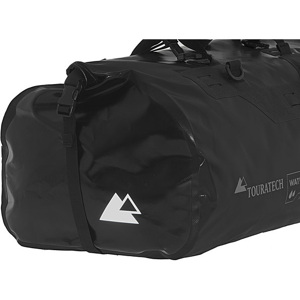 Multi-purpose travel and sports bag made of strong waterproof polyester fabric. The transverse roll-down closure on the top gives quick access to the inside and protects the contents from water and dust with customary Touratech reliability. Lashing straps with snap-in buckles provide the ideal bag fasteners. Exactly what bikers value: whether the bag is on the seat or luggage rack, they can look forward to dry luggage even after riding at high speeds or long journeys in the rain.